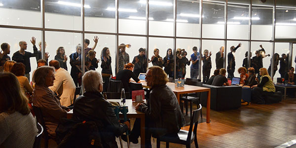 MASSE MENSCH :: 2013, 10. Mai 2013, 19–23 Uhr. Eine Performance mit 60 Mitwirkenden in der Kunsthalle und im Borubaki Bar/Bistro Luzern, gemeinsam mit Hudith Huber und Miriam Sturzenegger und dem Forum Neue Musik Luzern. Das Bourbaki Bar/Bistro und Kunsthalle Luzern zusammen sind ein Raumkomplex, der sich zu verschiedenen Zeiten mit Menschen füllt. Menschen kommen. Menschen gehen. Menschen schwatzen, essen, trinken, warten. «Masse Mensch» verleiht dem Ort mit diesem Raum- und Klangexperiment ein lichtes, irritierendes Klima.